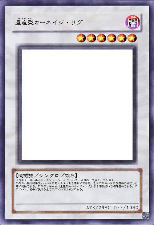 | 「S*s カーネイジ・モジュール」+ チューナー以外の「S*s」モンスター このカードは相手フィールドのモンスターもS素材にできる。①:このカードのS召喚に成功した時に発動できる。EXデッキから「量産型カーネイジ・リグ」をS召喚扱いで特殊召喚できる。このターン、相手が受ける全てのダメージは半分になる。 | |||