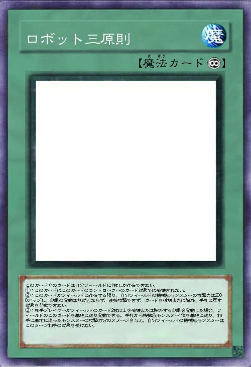 ですね。一時期はこの条例の矛盾について議論があった様ですが、現在その矛盾はなくなったみたいです。無論、上のフレーバーテキストの様にロボットが人間を攻撃するというのはこの三原則に則った場合はありません。」(2017-04-18 22:24)