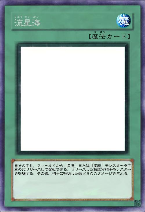 「「星竜・星龍」今回の魔法カードは前回投稿した「流星群」の前身、つまるところ大嵐とハリケーンとハーピィの羽根箒みたいなものです。初期の「星竜・星龍」デッキでこのカードだけ異常に万能で強すぎたので、一部モンスターのエラッタついでに「流星群」へと変化しました。」(2017-04-20 01:20)