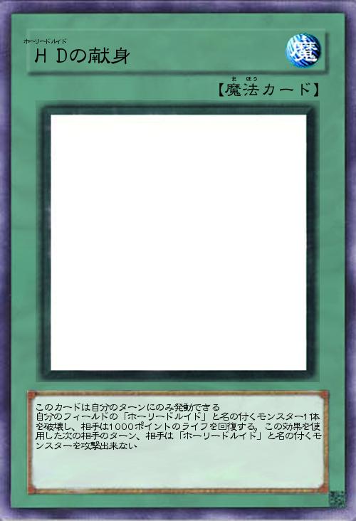 | このカードは自分のターンにのみ発動できる 自分のフィールドの「ホーリードルイド」と名の付くモンスター1体を破壊し、相手は1000ポイントのライフを回復する。この効果を使用した次の相手のターン、相手は「ホーリードルイド」と名の付くモンスターを攻撃出来ない | |||