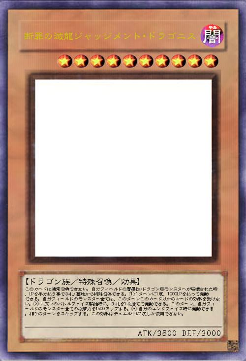 | このカードは通常召喚できない。自分フィールドの闇属性・ドラゴン族モンスターが破壊された時、LPを半分払う事で手札・墓地から特殊召喚できる。①:1ターンに1度、1000LPを払って発動できる。自分フィールドのモンスター全ては、このターンこのカード以外のカードの効果を受けない。②:お互いのバトルフェイズ開始時に、手札を1枚捨てて発動できる。このターン、自分フィールドのモンスター全ての攻撃力を1500アップする。③:自分のエンドフェイズ時に発動できる。相手のターンをスキップする。この効果はデュエル中に1度しか使用できない。 | |||