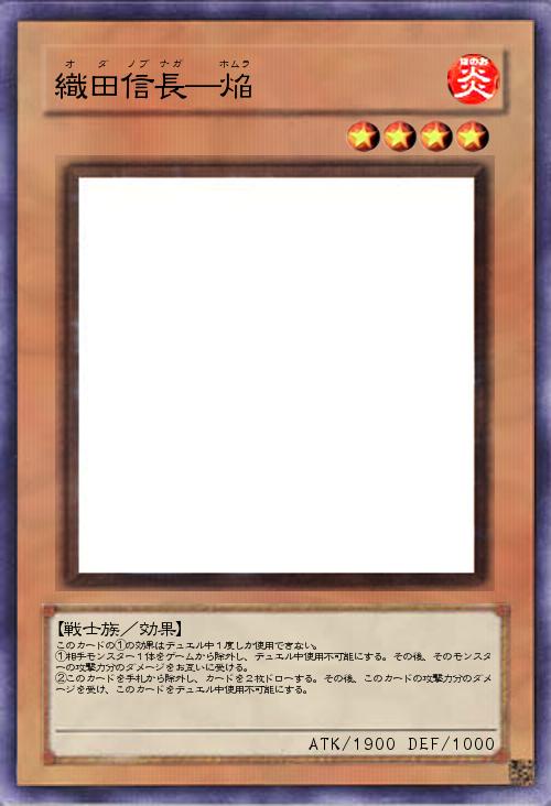 | このカードの①の効果はデュエル中1度しか使用できない。 ①相手モンスター1体をゲームから除外し、デュエル中使用不可能にする。その後、そのモンスターの攻撃力分のダメージをお互いに受ける。 ②このカードを手札から除外し、カードを2枚ドローする。その後、このカードの攻撃力分のダメージを受け、このカードをデュエル中使用不可能にする。 | |||