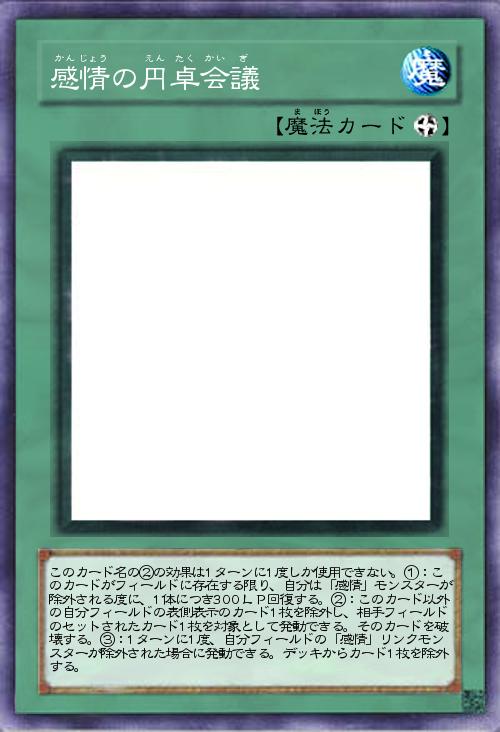 会議って難しいね。フィールド魔法で感情モンスターが除外される度に300のライフを回復することができます。そしてこのカード以外の自分カードを除外することで、相手のセットカード1枚を破壊することができ、最後に感情リンクが除外されればデッキからカードを1枚除外することができます。」(2017-04-24 18:00)