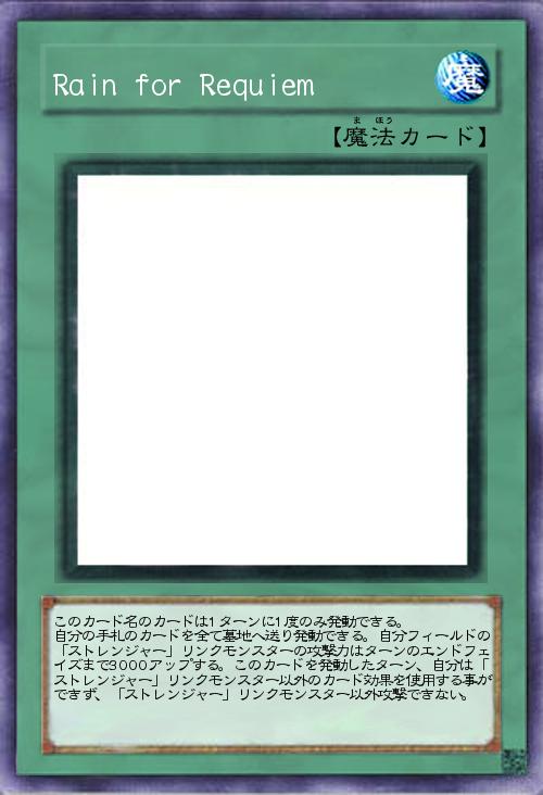 | このカード名のカードは1ターンに1度のみ発動できる。 自分の手札のカードを全て墓地へ送り発動できる。自分フィールドの「ストレンジャー」リンクモンスターの攻撃力はターンのエンドフェイズまで3000アップする。このカードを発動したターン、自分は「ストレンジャー」リンクモンスター以外のカード効果を使用する事ができず、「ストレンジャー」リンクモンスター以外攻撃できない。 | |||