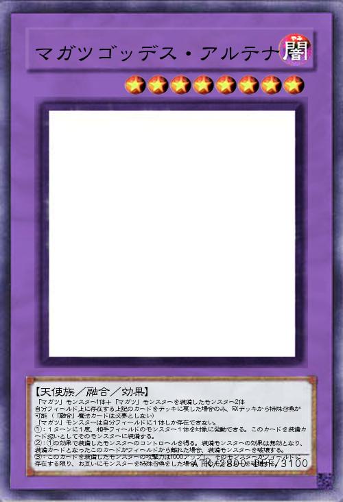 | 「マガツ」モンスター1体+「マガツ」モンスターを装備したモンスター2体 自分フィールド上に存在する上記のカードをデッキに戻した場合のみ、EXデッキから特殊召喚が可能(「融合」魔法カードは必要としない) 「マガツ」モンスターは自分フィールドに1体しか存在できない。 ①:1ターンに1度、相手フィールドのモンスター1体を対象に発動できる。このカードを装備カード扱いとしてそのモンスターに装備する。 ②:①の効果で装備したモンスターのコントロールを得る。装備モンスターの効果は無効となり、装備カードとなったこのカードがフィールドから離れた場合、装備モンスターを破壊する。 ③:このカードを装備したモンスターの攻撃力は1000アップし、そのモンスターがフィールドに存在する限り、お互いにモンスターを特殊召喚をした場合、そのモンスターを破壊する。 | |||