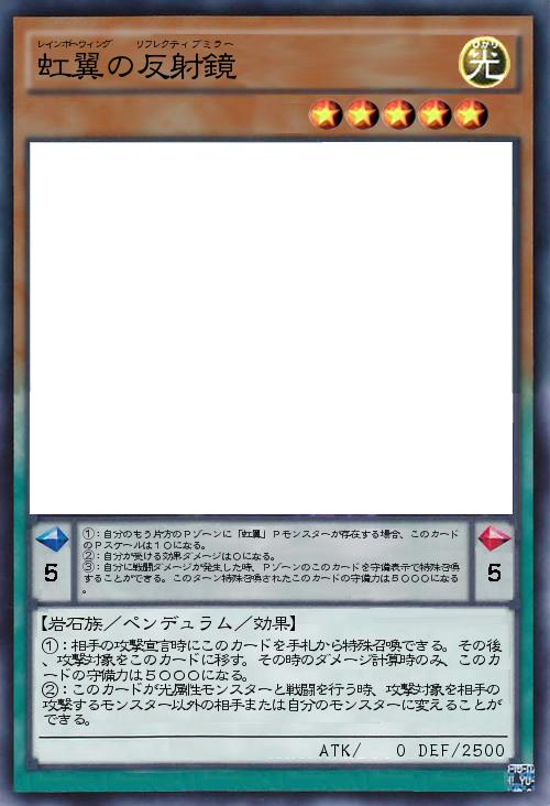 イメージ的にはモンスターゾーンに残るマジックシリンダーならぬマジックミラー。本来は演出のための光を反射させたり乱反射させたりと、虹翼の演出灯をサポートするモンスターだったりします。