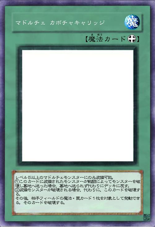 | レベル5以上のマドルチェモンスターにのみ装備可能。 ①このカードに装備されたモンスターが戦闘によってモンスターを破壊し墓地へ送った場合、墓地へ送られず代わりにデッキに戻す。 ②装備モンスターが破壊される場合、代わりに、このカードを破壊する。 その後、相手フィールドの魔法・罠カード1枚を対象として発動できる。そのカードを破壊する。 | |||