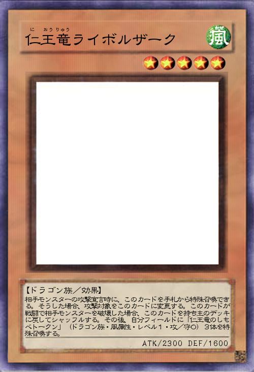 | 相手モンスターの攻撃宣言時に、このカードを手札から特殊召喚できる。そうした場合、攻撃対象をこのカードに変更する。このカードが戦闘で相手モンスターを破壊した場合、このカードを持ち主のデッキに戻してシャッフルする。その後、自分フィールドに「仁王竜のしもべトークン」(ドラゴン族・風属性・レベル1・攻/守0)3体を特殊召喚する。 | |||