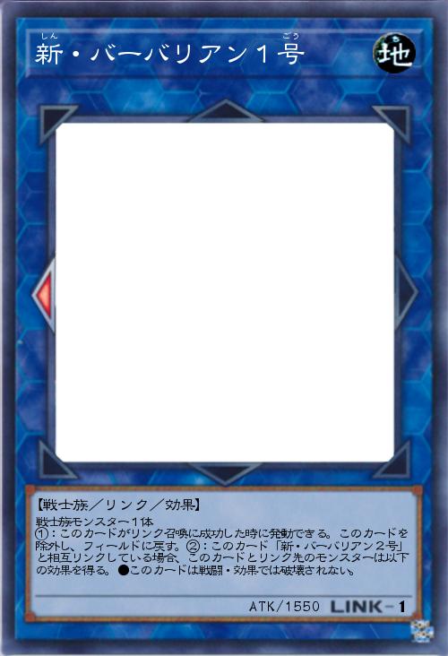 | 戦士族モンスター1体 ①:このカードがリンク召喚に成功した時に発動できる。このカードを除外し、フィールドに戻す。②:このカード「新・バーバリアン2号」と相互リンクしている場合、このカードとリンク先のモンスターは以下の効果を得る。●このカードは戦闘・効果では破壊されない。 | |||