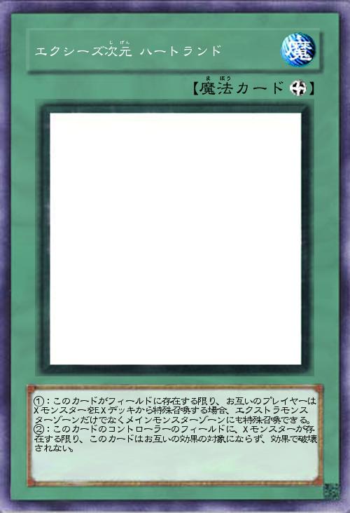 | ①:このカードがフィールドに存在する限り、お互いのプレイヤーはXモンスターをEXデッキから特殊召喚する場合、エクストラモンスターゾーンだけでなくメインモンスターゾーンにも特殊召喚できる。②:このカードのコントローラーのフィールドに、Xモンスターが存在する限り、このカードはお互いの効果の対象にならず、効果で破壊されない。 | |||