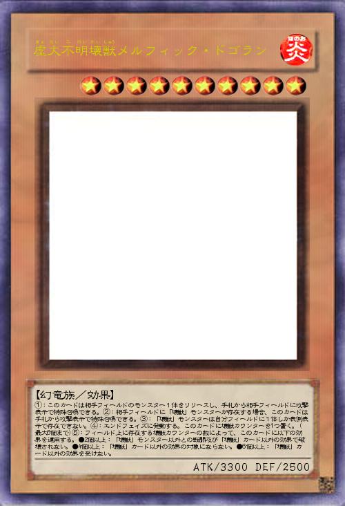 | ①:このカードは相手フィールドのモンスター1体をリリースし、手札から相手フィールドに攻撃表示で特殊召喚できる。②:相手フィールドに「壊獣」モンスターが存在する場合、このカードは手札から攻撃表示で特殊召喚できる。③:「壊獣」モンスターは自分フィールドに1体しか表側表示で存在できない。④:エンドフェイズに発動する。このカードに壊獣カウンターを1つ置く。(最大6個まで)⑤:フィールド上に存在する壊獣カウンターの数によって、このカードに以下の効果を適用する。●2個以上:「壊獣」モンスター以外との戦闘及び「壊獣」カード以外の効果で破壊されない。●4個以上:「壊獣」カード以外の効果の対象にならない。●6個以上:「壊獣」カード以外の効果を受けない。 | |||