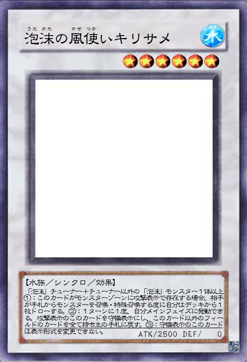 最後にシンクロ素材ですが、泡沫というテーマは種族や属性に関連したものではないため、水族や水属性などと指定はせずにカテゴリでまとめました。悪用しやすそうな効果ではありますし。」(2017-06-13 03:56)