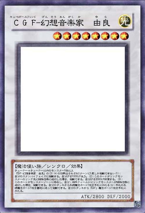 | チューナー+チューナー以外のモンスター1体以上 「CGF-幻想音楽家 由良」の(3)(4)の効果はそれぞれ1ターンに1度しか発動できない(1):自分のスタンバイフェイズに発動する。自分LPを1000LP失う。(2):このカードがリンクモンスターのリンク先に特殊召喚に成功した場合、発動できる。自分LPを2000LP回復する。(3):このカードがモンスターゾーンに存在し、自分・相手フィールドにリンクモンスターが特殊召喚に成功した場合、発動できる。自分のデッキから永続魔法カード1枚を手札に加える(4):手札の永続魔法カード1枚を墓地に送って発動できる。自分のデッキから「CGF」魔法カード1枚を手札に加える。 | |||