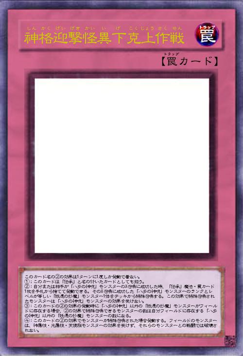 何故か神格の出現に合わせて同じフィールドに立ち、相手プレイヤーを殴る効果。ランクと同数かつ神格降臨時に存在していた妖魔の数特殊召喚できるため最上級をX召喚できれば制圧力はかなりのもの。4の効果は相手にも耐性付与するので神格の力が通じず、まさに神格四面楚歌。