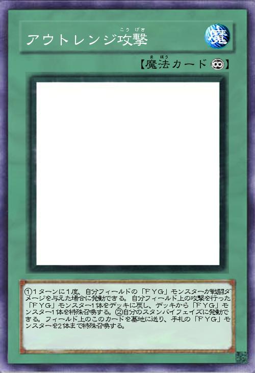 | ①1ターンに1度、自分フィールドの「FYG」モンスターが戦闘ダメージを与えた場合に発動できる。自分フィールド上の攻撃を行った「FYG」モンスター1体をデッキに戻し、デッキから「FYG」モンスター1体を特殊召喚する。②自分のスタンバイフェイズに発動できる。フィールド上のこのカードを墓地に送り、手札の「FYG」モンスターを2体まで特殊召喚する。 | |||