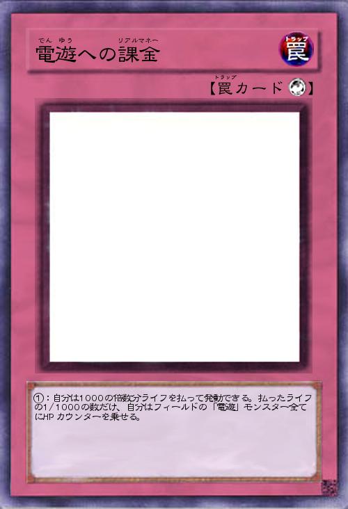 | ①:自分は1000の倍数分ライフを払って発動できる。払ったライフの1/1000の数だけ、自分はフィールドの「電遊」モンスター全てにHPカウンターを乗せる。 | |||