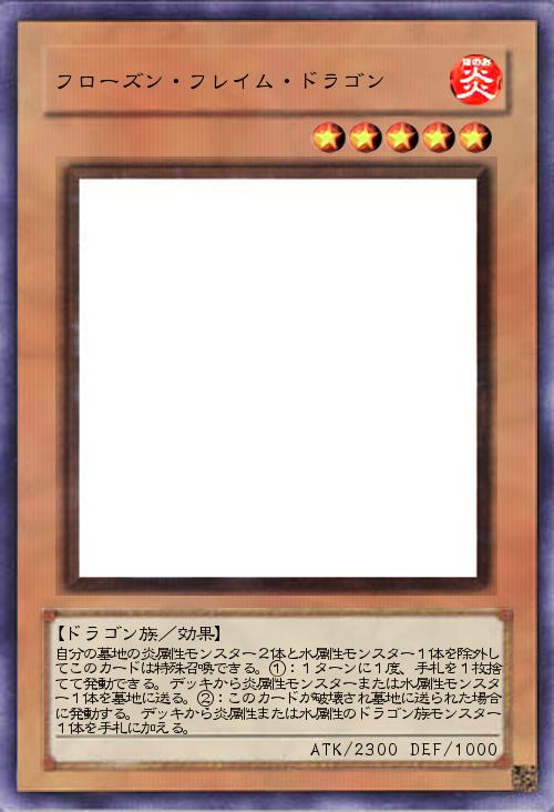 | 自分の墓地の炎属性モンスター2体と水属性モンスター1体を除外してこのカードは特殊召喚できる。①:1ターンに1度、手札を1枚捨てて発動できる。デッキから炎属性モンスターまたは水属性モンスター1体を墓地に送る。②:このカードが破壊され墓地に送られた場合に発動する。デッキから炎属性または水属性のドラゴン族モンスター1体を手札に加える。 | |||