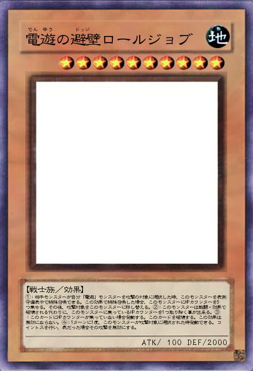 | ①:相手モンスターが自分「電遊」モンスターを攻撃の対象に選択した時、このモンスターを表側守備表示で特殊召喚できる。この効果で特殊召喚した場合、このモンスターにHPカウンターを5つ乗せる。その後、攻撃対象をこのモンスターに移し替える。②:このモンスターは戦闘・効果で破壊される代わりに、このモンスターに乗っているHPカウンターを1つ取り除く事が出来る。③:このカードにHPカウンターが乗っていない場合発動する。このカードを破壊する。この効果は無効にならない。④:1ターンに1度、このモンスターが攻撃対象に選択された時発動できる。コイントスを行い、表だった場合その攻撃を無効にする。 | |||