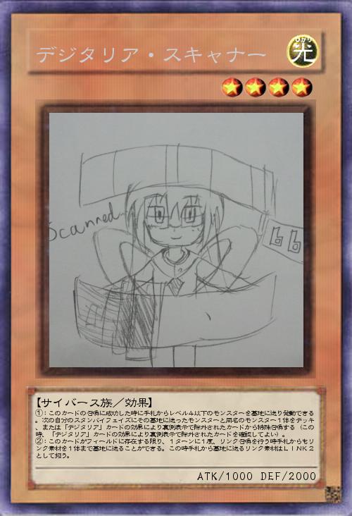元々デジタリアはリンク召喚のサポートというコンセプトで生まれたカテゴリなので、混成デッキや既存デッキへのリンク展開を目的としています。それ故にスキャナーは色々スキャンして最適なリンク方法を教えてくれるメガネっ娘です。」(2017-07-02 18:57)