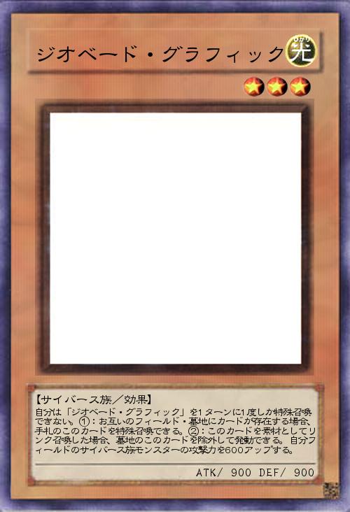 | 自分は「ジオベード・グラフィック」を1ターンに1度しか特殊召喚できない。①:お互いのフィールド・墓地にカードが存在する場合、手札のこのカードを特殊召喚できる。②:このカードを素材としてリンク召喚した場合、墓地のこのカードを除外して発動できる。自分フィールドのサイバース族モンスターの攻撃力を600アップする。 | |||