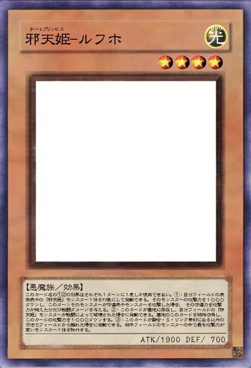 | このカード名の①②の効果はそれぞれ1ターンに1度しか使用できない。①:自分フィールドの表側表示の「邪天姫」モンスター1体を対象にして発動できる。そのモンスターの攻撃力を1000ダウンし、このターンそのモンスターが守備表示モンスターを攻撃した場合、 その守備力を攻撃力が超えた分だけ戦闘ダメージを与える。②:このカードが墓地に存在し、自分フィールドの「邪天姫」モンスターが戦闘によって破壊された場合に発動できる。墓地のこのカードを特殊召喚し、このカードの攻撃力を1000ダウンする。③:このカードが融合・S・リンク素材になる以外の方法でフィールドから離れた場合に発動できる。相手フィールドのモンスターの中で最も攻撃力が高いモンスター1体を除外する。 | |||
