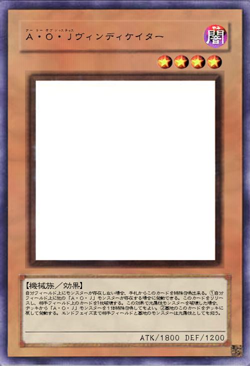 | 自分フィールド上にモンスターが存在しない場合、手札からこのカードを特殊召喚出来る。①自分フィールド上に他の「A・O・J」モンスターが存在する場合に発動できる。このカードをリリースし、相手フィールド上のカードを1枚破壊する。この効果で光属性モンスターを破壊した場合、デッキから「A・O・J」モンスターを1体特殊召喚してもよい。②墓地のこのカードをデッキに戻して発動する。エンドフェイズまで相手フィールドと墓地のモンスターは光属性としても扱う。 | |||