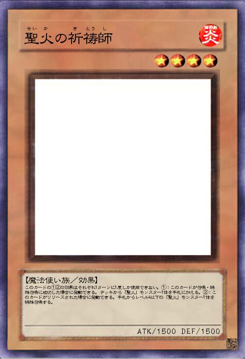 | このカードの①②の効果はそれぞれ1ターンに1度しか使用できない。①:このカードが召喚・特殊召喚に成功した場合に発動できる。デッキから「聖火」モンスター1体を手札に加える。②:このカードがリリースされた場合に発動できる。手札からレベル4以下の「聖火」モンスター1体を特殊召喚する。 | |||