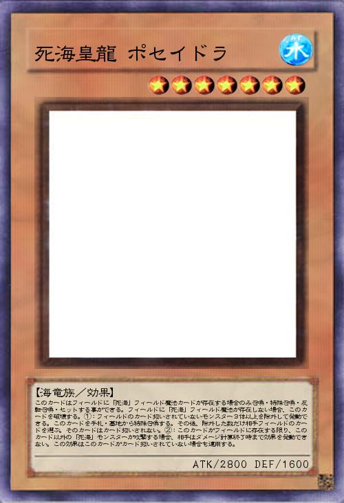 | このカードはフィールドに「死海」フィールド魔法カードが存在する場合のみ召喚・特殊召喚・反転召喚・セットする事ができる。フィールドに「死海」フィールド魔法が存在しない場合、このカードを破壊する。①:フィールドのカード扱いされていないモンスター3体以上を除外して発動できる。このカードを手札・墓地から特殊召喚する。その後、除外した数だけ相手フィールドのカードを選ぶ。そのカードはカード扱いされない。②:このカードがフィールドに存在する限り、このカード以外の「死海」モンスターが攻撃する場合、相手はダメージ計算終了時まで効果を発動できない。この効果はこのカードがカード扱いされていない場合も適用する。 | |||