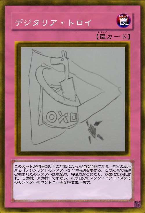 相手が除去してこようとこのカードを対象にとって来ればその名の通り罠が発動し、墓地のデジタリアを相手へプレゼント。攻守が0になり、S・