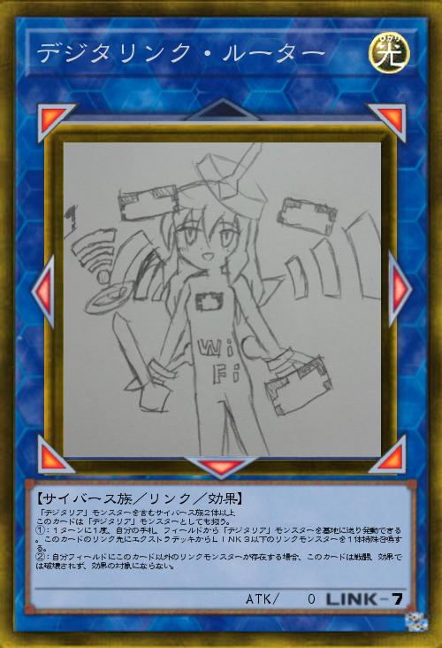 棲身体や霊体というより量子構成体かも・・・現実でもデジタリアでも中継役とデータベースの次に大事なデジタリア。ツィオルキンの如くどんどんリンク召喚(扱いではないが)してデジタル攻撃だ!そして守備表示にできないのをすっかり忘れてて危うくサンドバックに・・・」(2017-07-02 19:10)