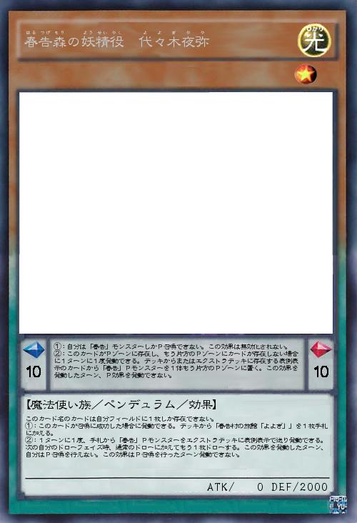 スケールは10と幅広いですね。上級春告も呼べちゃうぜ!そしてP効果が相方がいなければ、デッキ・EXデッキの表側の中から春告Pをセッティングできると便利!P効果が発動できなくなりますが、スケールが張れるため、有効活用したいですね!」(2017-07-09 18:20)