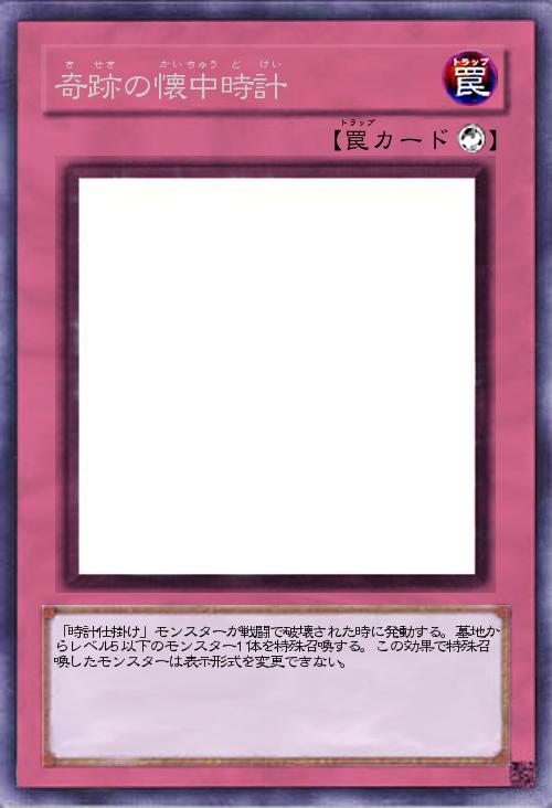 | 「時計仕掛け」モンスターが戦闘で破壊された時に発動する。墓地からレベル5以下のモンスター1体を特殊召喚する。この効果で特殊召喚したモンスターは表示形式を変更できない。 | |||