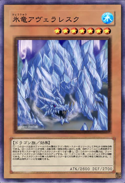 | ①:このカードは自分フィールドの水属性ドラゴン族モンスターをリリースして手札から特殊召喚できる。②:このカードが召喚・反転召喚・特殊召喚に成功した時、相手フィールドに表側表示で存在するモンスター全てにアイスカウンターを1つずつ置く。③:このカードの攻撃力は、フィールドのアイスカウンターの数×200アップする。④:1ターンに1度、バトルフェイズ中に発動できる。アイスカウンターの乗った相手モンスター全ての効果をターン終了時まで無効化する。この効果は相手ターンにも発動できる。 | |||