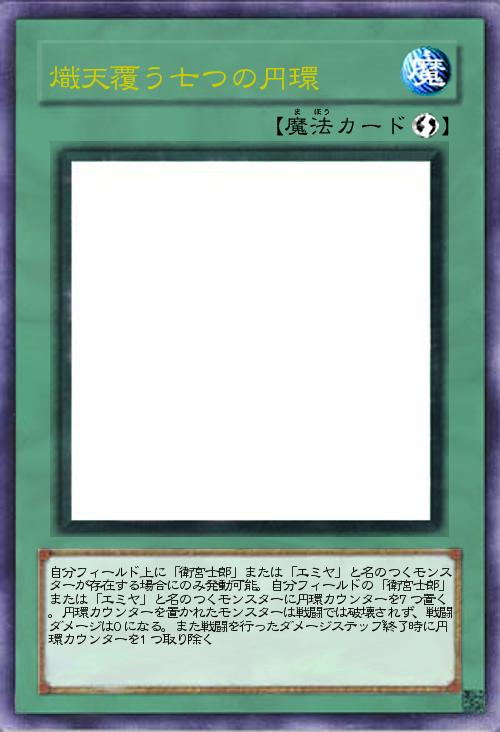 | 自分フィールド上に「衛宮士郎」または「エミヤ」と名のつくモンスターが存在する場合にのみ発動可能。自分フィールドの「衛宮士郎」または「エミヤ」と名のつくモンスターに円環カウンターを7つ置く。円環カウンターを置かれたモンスターは戦闘では破壊されず、戦闘ダメージは0になる。また戦闘を行ったダメージステップ終了時に円環カウンターを1つ取り除く | |||