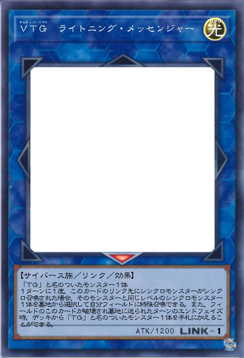 | 「TG」と名のついたモンスター1体 1ターンに1度、このカードのリンク先にシンクロモンスターがシンクロ召喚された場合、そのモンスターと同じレベルのシンクロモンスター1体を墓地から選択して自分フィールドに特殊召喚できる。また、フィールドのこのカードが破壊され墓地に送られたターンのエンドフェイズ時、デッキから「TG」と名のついたモンスター1体を手札に加えることができる。 | |||