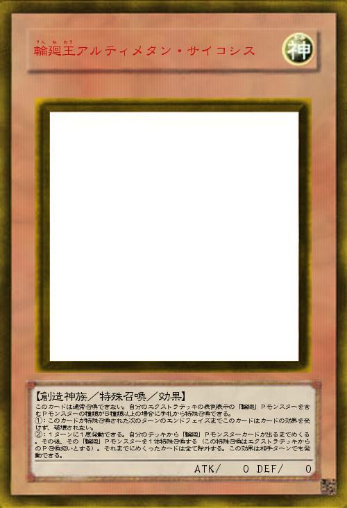 | このカードは通常召喚できない。自分のエクストラデッキの表側表示の「輪廻」Pモンスターを含むPモンスターの種類が5種類以上の場合に手札から特殊召喚できる。 ①:このカードが特殊召喚された次のターンのエンドフェイズまでこのカードはカードの効果を受けず、破壊されない。 ②:1ターンに1度発動できる。自分のデッキから「輪廻」Pモンスターカードが出るまでめくる。その後、その「輪廻」Pモンスターを1体特殊召喚する(この特殊召喚はエクストラデッキからのP召喚扱いとする)。それまでにめくったカードは全て除外する。この効果は相手ターンでも発動できる。 | |||