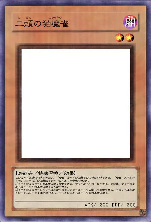 | このカードは通常召喚できない。「魔雀」カードの効果でのみ特殊召喚できる。「魔雀」と名が付くモンスターの①の効果は1ターンに1度しか発動できない。 ①:手札のこのカードを墓地に送り発動できる。デッキから1枚ドローする。その後、デッキの上からカードを1枚墓地に送ることができる。 ②:手札のこのカードとレベル差が1のモンスターカードを公開して発動できる。そのレベル差が1のモンスターを1体特殊召喚し、デッキの上からカードを2枚墓地に送る。 | |||