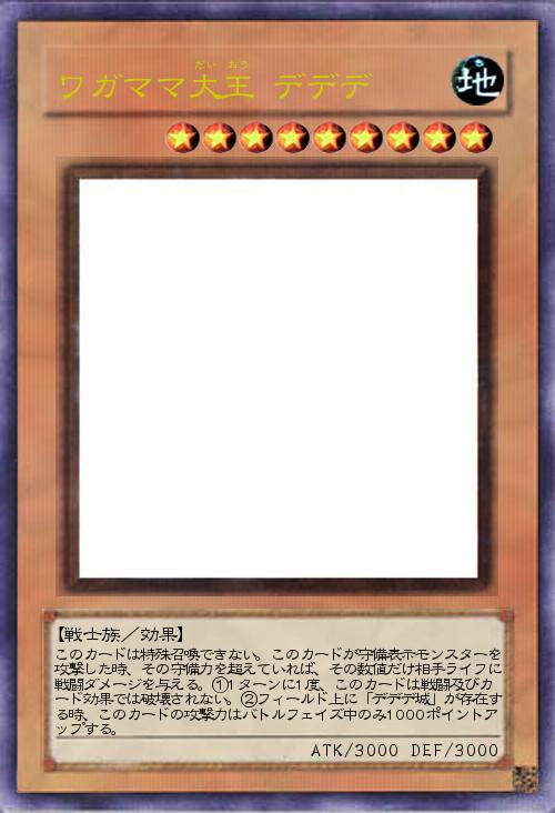 | このカードは特殊召喚できない。このカードが守備表示モンスターを攻撃した時、その守備力を超えていれば、その数値だけ相手ライフに戦闘ダメージを与える。①1ターンに1度、このカードは戦闘及びカード効果では破壊されない。②フィールド上に「デデデ城」が存在する時、このカードの攻撃力はバトルフェイズ中のみ1000ポイントアップする。 | |||