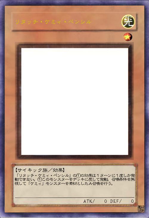 | 「リタッチ・ケミィ・ペンシル」の①の効果は1ターンに1度しか発動できない。①このモンスターをデッキに戻して発動。召喚条件を無視して「ケミィ」モンスターを素材としたA召喚を行う。 | |||