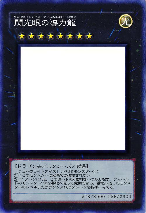 | 「ヴェーヴライトアイズ」レベル8モンスター×2 ①:このモンスターは効果では破壊されない。 ②:1ターンに1度、このカードのX素材を一つ取り除き、フィールドのモンスター1体を墓地へ送って発動できる。墓地へ送ったモンスターのレベルまたはランク×100ダメージを相手に与える。 | |||
