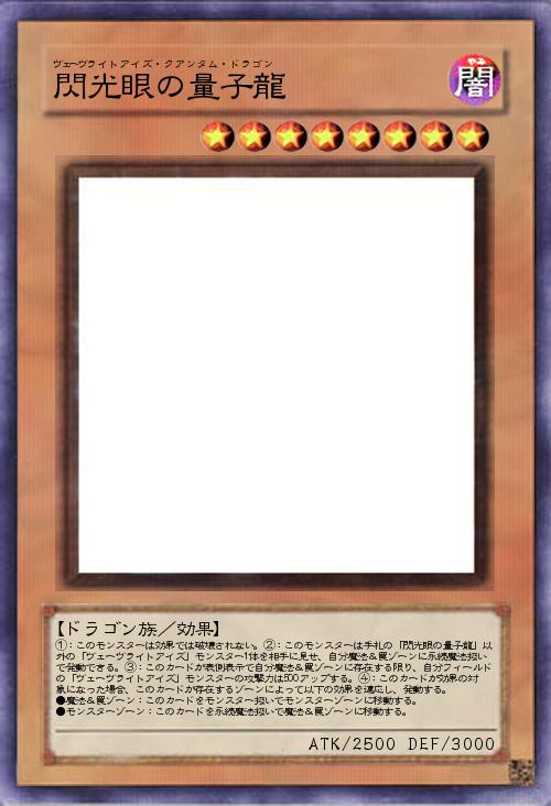 | ①:このモンスターは効果では破壊されない。②:このモンスターは手札の「閃光眼の量子龍」以外の「ヴェーヴライトアイズ」モンスター1体を相手に見せ、自分魔法&罠ゾーンに永続魔法扱いで発動できる。③:このカードが表側表示で自分魔法&罠ゾーンに存在する限り、自分フィールドの「ヴェーヴライトアイズ」モンスターの攻撃力は500アップする。④:このカードが効果の対象になった場合、このカードが存在するゾーンによって以下の効果を適応し、発動するう。 ●魔法&罠ゾーン:このカードをモンスター扱いでモンスターゾーンに移動する。 ●モンスターゾーン:このカードを永続魔法扱いで魔法&罠ゾーンに移動する。 | |||