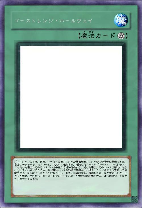 | ①:1ターンに1度、自分フィールドのモンスターが悪魔族モンスターのみの場合に発動できる。自分はデッキから1枚ドローし、お互いに確認する。確認したカードが「ゴーストレンジ」モンスターだった場合、そのモンスターを手札から特殊召喚する。違った場合、そのカードを墓地へ送る。②:フィールドのこのカードが魔法カードの効果で破壊された場合、カード名を1つ宣言して発動できる。自分はデッキから1枚ドローし、お互いに確認する。確認したカードが宣言したカードだった場合、手札から「ゴーストレンジ」モンスター1体を特殊召喚できる。違った場合、そのカードをデッキに戻す。 | |||