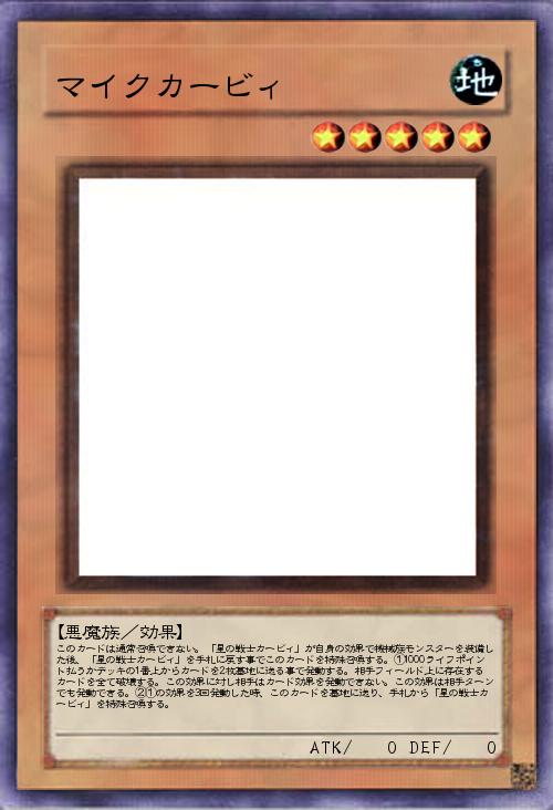 | このカードは通常召喚できない。「星の戦士カービィ」が自身の効果で機械族モンスターを装備した後、「星の戦士カービィ」を手札に戻す事でこのカードを特殊召喚する。①1000ライフポイント払うかデッキの1番上からカードを2枚墓地に送る事で発動する。相手フィールド上に存在するカードを全て破壊する。この効果に対し相手はカード効果を発動できない。この効果は相手ターンでも発動できる。②①の効果を3回発動した時、このカードを墓地に送り、手札から「星の戦士カービィ」を特殊召喚する。 | |||