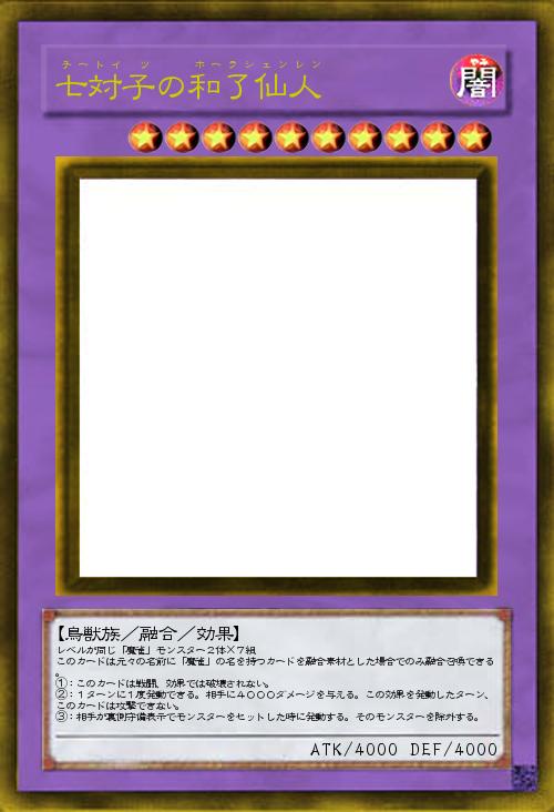 | レベルが同じ「魔雀」モンスター2体×7組 このカードは元々の名前に「魔雀」の名を持つカードを融合素材とした場合でのみ融合召喚できる。 ①:このカードは戦闘、効果では破壊されない。 ②:1ターンに1度発動できる。相手に4000ダメージを与える。この効果を発動したターン、このカードは攻撃できない。 ③:相手が裏側守備表示でモンスターをセットした時に発動する。そのモンスターを除外する。 | |||