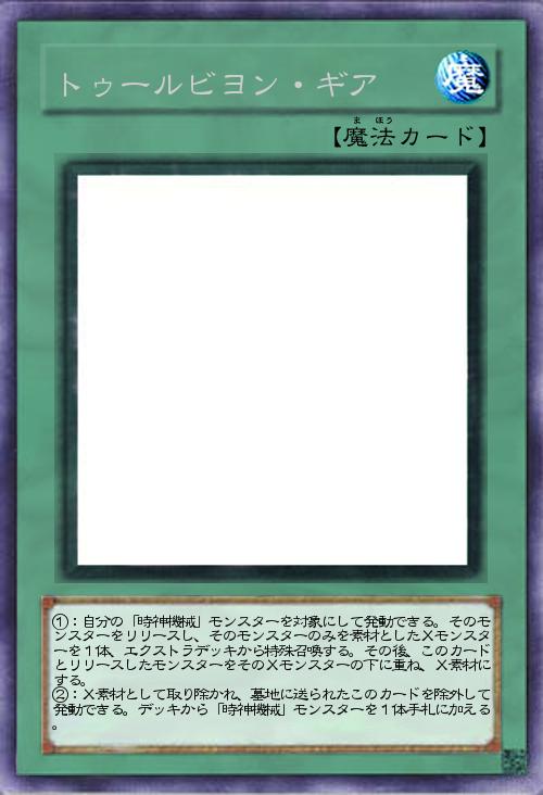 | ①:自分の「時神機械」モンスターを対象にして発動できる。そのモンスターをリリースし、そのモンスターのみを素材としたXモンスターを1体、エクストラデッキから特殊召喚する。その後、このカードとリリースしたモンスターをそのXモンスターの下に重ね、X素材にする。 ②:X素材として取り除かれ、墓地に送られたこのカードを除外して発動できる。デッキから「時神機械」モンスターを1体手札に加える。 | |||