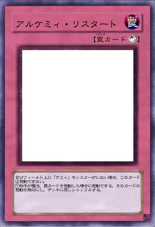 | 自分フィールド上に「ケミィ」モンスターがいない場合、このカードは発動できない。 ①相手が魔法、罠カードを発動した場合に発動できる。そのカードの発動を無効にし、デッキに戻しシャッフルする。 | |||