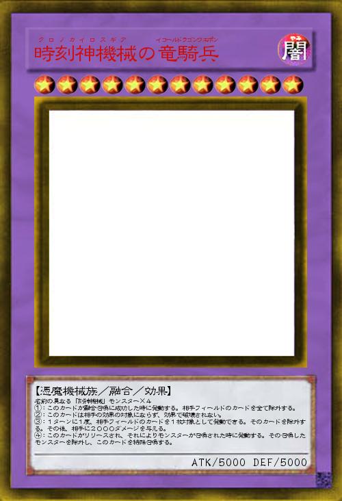| 名前の異なる「刻神機械」モンスター×4 ①:このカードが融合召喚に成功した時に発動する。相手フィールドのカードを全て除外する。 ②:このカードは相手の効果の対象にならず、効果で破壊されない。 ③:1ターンに1度、相手フィールドのカードを1枚対象として発動できる。そのカードを除外する。その後、相手に2000ダメージを与える。 ④:このカードがリリースされ、それによりモンスターが召喚された時に発動する。その召喚したモンスターを除外し、このカードを特殊召喚する。 | |||