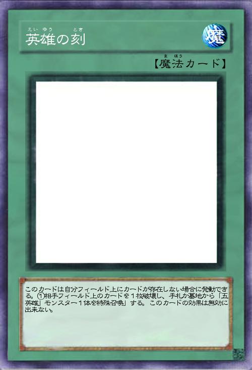 | このカードは自分フィールド上にカードが存在しない場合に発動できる。①相手フィールド上のカードを1枚破壊し、手札か墓地から「五英雄」モンスター1体を特殊召喚」する。このカードの効果は無効に出来ない。 | |||