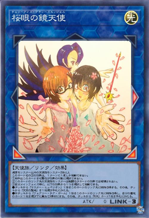 最初は前回の『-Ph.X-』と同じく魔法カードにしようと思ってたのですが、イラストの3人の手が何故かリンクマーカーに見えてしまったため急遽リンクモンスターに。なので3人の向けてる手の方向にマーカーが向いています。