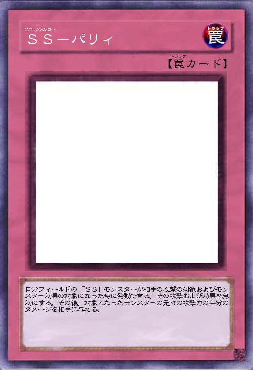 | 自分フィールドの「SS」モンスターが相手の攻撃の対象およびモンスター効果の対象になった時に発動できる。その攻撃および効果を無効にする。その後、対象となったモンスターの元々の攻撃力の半分のダメージを相手に与える。 | |||